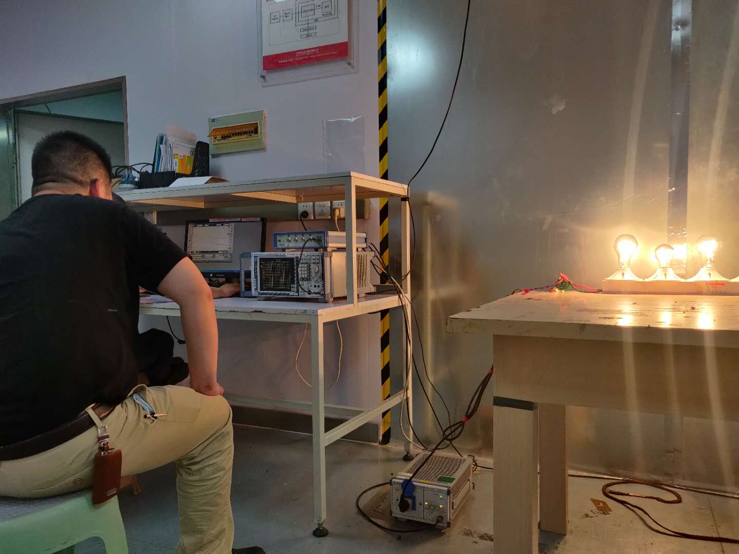 從小到大依次進行測試,首先,谷景工程師使用帶磁環電感的300W可控電路進行測試,將燈光調至最亮情況,傳導測試可以通過。